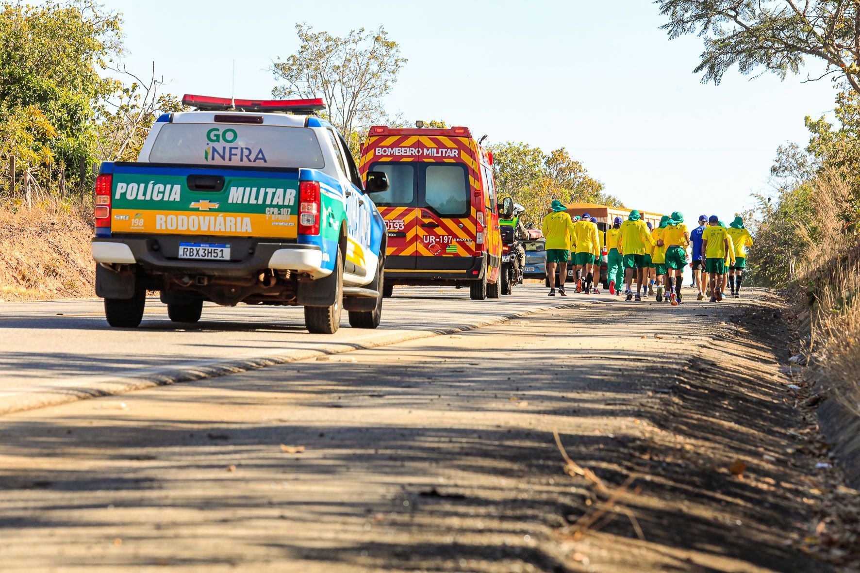 Percorremos, em média, 60 km por dia. Saímos de Trindade, com paradas em Goianira, Brazabrantes, Caturaí, Inhumas, Itauçu, Itaberaí, Goiás, Faina, Araguapaz até a chegada às margens do Rio Araguaia, em Aruanã.